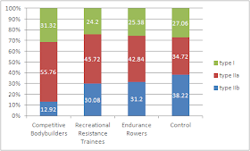 Well, that's obviously what Meijer et al. thought, as well, when they phrased the following hypotheses about the way the muscle fiber specific tension (F0) of 12 male bodybuilders (BB | BB: 29.8 ± 4.8y; 177.8 ± 4.1 cm; 91.7 ± 13.4 kg), 6 male powerlifters / power athlete (PA | 23.4 ± 3.9 y; 185.0 ± 4.3 cm; 103.0 ± 7.3 kg) and 14 non-competitive / weight lifting controls (C | 24.0 ± 3.5 y; 180.9 ± 5.3 cm; 77.9 ± 6.3 kg) differ in the introduction to their latest paper:Accordingly, on single fiber basis, the power generating capacity of a body builder (BB) is not only lower than that of a powerlifter, it's actually not even higher than that of an untrained individual (C) - and that despite the fact that the individual muscle fibers are significantly larger. As the authors further explain, "[t]his unexpected observation was explicable by a lower fiber specific tension in BB compared to C fibres". In this context it is important to point out that the C and PA group in the study at hand performed a comparable, albeit relatively low amount of aerobic exercise, it is thus "likely that the effects shown in PA can be attributed to the high-intensity low-volume resistance training," (ibid.), alone.