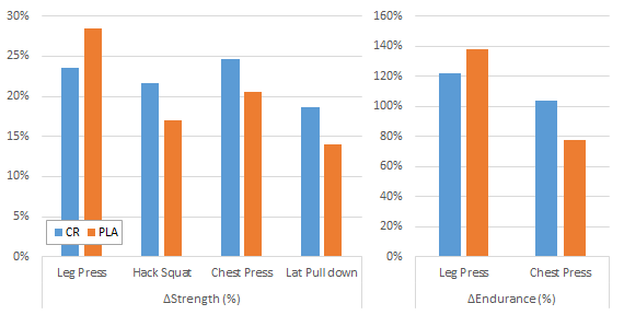 "During the study, participants exercised 3 days/week, on non-consecutive days, to reduce the risk of injury. Participants performed 2 sets of drop-set resistance training for the leg press, chest press, hack squat and lat pull-down exercises. Each set consisted of performing repetitions to muscle fatigue at 80% baseline 1-RM immediately followed by repetitions to muscle fatigue at 30% baseline 1-RM" (Johannesmeyer. 2016).What is a bit odd, is the fact that the training load was not increased over the the 12 weeks of training and supplementation, as the purpose of the study was to overload the upper and lower body musculature by increasing the number of repetitions performed to muscle fatigue - not by increasing weights / loads.