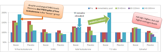 In the researchers defense, it does yet have to be said that they do not simply ignore the fact that the significance of workout induced changes in the "anabolic milieu" in terms of immediate skeletal muscle growth may have been overrated."Although the T:C [ratio between testosterone and cortisol] is a crude measure, it response shows that the elevated in testosterone in the latter stages of recovery following ethanol ingestion is not associated with a corresponding elevation in cortisol, a hormone with catabolic and anti-anabolic physiological effects. The results for the T:C ratio suggest that a more anabolic milieu exists during the latter stages of recovery from resistance exercise following ethanol ingestion." (Vingren. 2013)