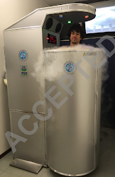 | Figure 4: In contrast to what you would expect from a study assessing the effects of cooling on handgrip strength, the scientists used an expensive whole body cryo-therapy device, the "Space Cabin" by the "Criomed Ltd" (de Nardi. 2017). |
