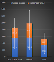 | Figure 1: Graphical summary of the results; no sign. inter-group differences for Bizzy Diet (alone) vs. BD + FitMiss Burn. |