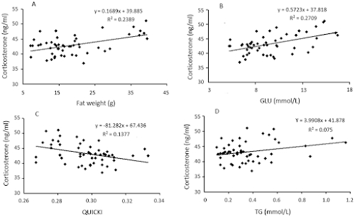 | Figure 4: Correlations between serum corticosterone and several variables (Shen 2017). |