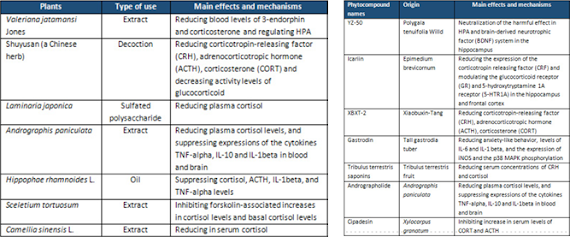 | Table 1 & 2: Plants (left) and phytocompounds w/ stress modulating effects |