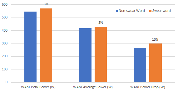 | Figure 1: Effects of swearing on power output during the Wingate test (Stephens 2017). |