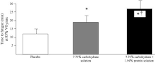 | Time to fatigue during a cycling bout at 85% Vo2max. Before the time trial, subjects exercised for 30 minutes at 45%Vo2max and performed 15 × 3 to 8-minute intervals at 75%Vo2max interjected with 15 × 3 to 8-minute active recovery periods at 45% Vo2max. Following this 180-minute sequence, subjects cycled to fatigue at 85% Vo2max. Equal boluses of each supplement were provided at 10-minute intervals over the 180-minute period before the fatigue test (as published in Kerksick & Roberts 2010). |
