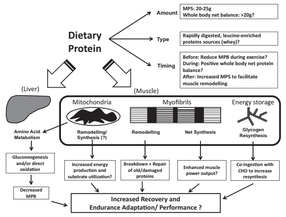 | Figure 6: Overview of the potential effects of protein ingestion on supporting the recovery from endurance-based exercise as means to enhance endurance capacity and performance (Moore 2014). |