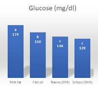 More research is clearly warranted to find out, if the fact that microalgae oils, which also contain phospholipid and not triglyceride bound EPA + DHA (Ryckebosch 2014), as well as sterols and carotenoids as an added bonus, could provide specific benefits such as the glucose improvement in Lopes et al., which didn't make it into the abstract of Lopes' study in Nutrition & Metabolism.
