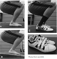 What do we know about the heel-effect? A number of published research studies assessed the effects of the heel-raised foot posture on the trunk and lower extremity biomechanics during execution of the barbell back squat. In that, the results of studies like Sato et al. (16) or Legg et al. (11) are probably the most cited investigations; and what shall I say? Both "found less relative displacement between the hip and the bar in the weightlifting shoes condition, indicating a less flexed trunk posture" (Lee 2019). As Lee et al. point out, though, Legg's conclusion that "wearing Olympic weightlifting shoes may aid those with back pain because of the decreased trunk flexion causing less strain on the spine" (Lee 2019)... So far so good, another claim, namely an increase knee extensors and reduction of spinal extensor activity was postulated but not measured by the UK researchers (