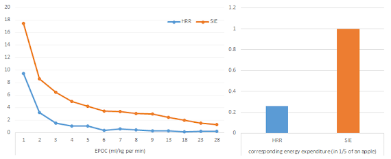 - an increase in resting energy expenditure (RER), which actually drops in the 60min after exercise, and