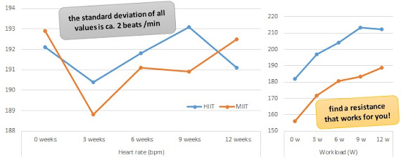 ... it is VERY likely that this is a "overweight woman phenomenon". After all, the heart rate was essentially the same regardless of whether the ladies worked out at an average intensity of 176W (MIIT) or 202W.