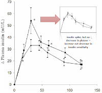 | In healthy human beings the administration of 6g of curcuma longa before a 75g glucose tolerance test does just one thing: It spikes insulin without improving the glucose uptake. Technically this is a decrease - not an increase in insulin sensitivity, which would have to be observed if curcumin was an insulin-sensitizer. |