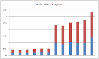 | Total ingested (full bars) and absorbed (blue part of the bar) amount of dietary carnitine in mg/kg body weight (from Amino Acids for Super Humans) |