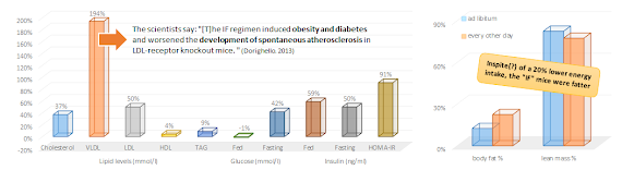 I guess you don't have to be a rocket scientists to see what the data in Figure 1 is telling us: In spite of a 20% reduction in energy intake (over the whole week), the rodents in the Dorighello study did not benefit from their every other day fasting regimen (EODF)