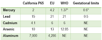 | Table 4: Toxicant levels according to origin; Pb: lead, Cd: cadmium, Al: aluminum, As: arsenic (Schwalfenberg. 2013) |