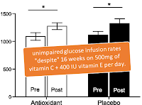 Now, the chronic intake scenario in type II diabetics turned out to be quite disappointing, so let's turn to the purported benefits for the (still) normal folks. People like the older participants of a prospective study by Song et al. in which the researchers from the Harvard Medical School and other labs observed that the use of vitamin C and calcium supplements (see previous installment of this series on calcium) was associated with significantly lower risk of diabetes (-9% for vitamin C, but -15% for calcium; the use of a multivitamin was associated with non-significant increases in diabetes risk; Song. 2011)