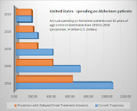 | Annual spending Alzheimer patients >65y in the US from 2010 to 2050 (projection, in billion U.S. dollars; Alzheimer's Association. 2010) |