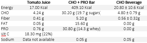 You care? Ok, in that case, you may be inclined to hear that the bar contained 30.20 g (19.7 g sugars) carbohydrates, 5.2g fiber, a surprisingly high amount of fat (15.6g) and. of course, protein 30.8g to be precise (14.3 g whey protein). If we add the energy content of carbs, fats and protein up, we get an energy content of ~400kcal for the bar and thus approx 24x more than in 100ml of the tomato juice, which is - as you can see in Table 1 more or less devoid of "nutrients", but packed with antioxidants.
