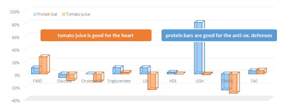 | Figure 1: Changes (% pre) in response to tomato juice & protein bar supplementation (Samaras. 2014) |