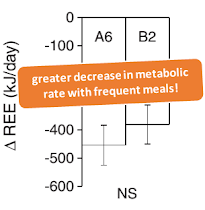 In spite of the fact that the researchers found that the body weight decreased in both regimens, there was a highly significant advantage for the two-meal (B2; -3.7kg) regimen over the six-meal (A6; -2.3kg) regimen. Similarly, liver fat content (B2 -0.04% vs. A6 -0.03%), fasting plasma glucose and the pro-insulinogenic C-peptide levels decreased in both regimens - yet obviously more for the two-meal strategy.Eating more frequent makes you hungry and will shut down your metabolism
