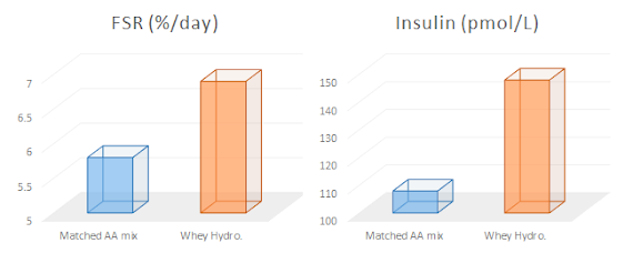 "[...]that post-exercise ingestion of whey protein differentially alters the portion of the transcriptome that is involved in tissue structure and remodelling, including production of the extracellular matrix, cytoskeleton and contractile proteins." (Kanda. 2014)In contrast to their previous study, which was the basis of the discussion in an article I wrote last year (" Don't Judge a Protein by Its Amino Acid Content: 17% Higher Protein Synthesis With Whey vs. Free Form Amino Acids" | read previous article) and where their focus was on mTOR and the fractional protein synthesis (see Figure 1), the study at hand focused focused less on the net effect and more on the underlying (genomic) which explains the fact that free form amino acids suck and whey hydrolysate rules.