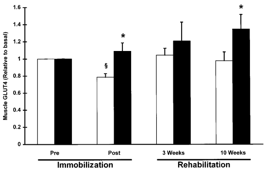 | Figure 3: Creatine monohydrate supplementation increases glucose uptake via GLUT-4 receptor expression in immobilized and active human skeletal muscle (Op't Eijnde. 2001) |