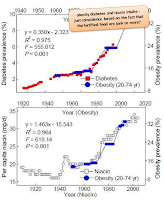 yesterday's post on the statistics of the diabesity epidemic. That said, you may remember that the gap between "more" and "less" active individuals was widening, but on average the NHANES stats would suggest that the average US citizen is not sitting around much longer today (or rather in 2004) than 40 years ago. Now, the NHANES data is based on a questionnaire of which Healy et al., who have analyzed the accuracy of these self-reported activity levels in a 2010 paper (Healy. 2011), found that the difference between the real and the claimed sedentary time increases by one hour for every 3h of sedentary time (at least for people with a sedentary time of >7h)