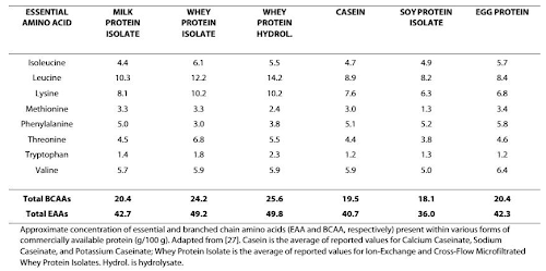 | Table 1: Approximate amino acid composition of popular protein powders (Hulmi. 2010) |