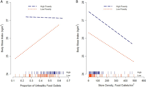 Specifically in view of the fact that there is a positive association between BMI and the proportion of BMI-unhealthy food outlets (0.26 BMI units per IQR, 95% CI 0.09 to 0.43) and no association with outlet diversity. If we went by the results of this study, though, it would appear that living close to food outlets serving donuts, hotdogs and pizza will increase your obesity risk - according to a detail analysis of the New Yorker researchers, this risk is specifically pronounced for people living in areas with "poverty zip codes" (Stark. 2014). - Food Prices and Obesity - is there a link? As a SuppVersity reader you will know that politics and researchers have repeatedly been debating about taxes on unhealthy foods. To estimate, whether these taxes would work, we would yet have to know "the extent to which overall energy intake or weight outcomes" are actually influenced by food prices.