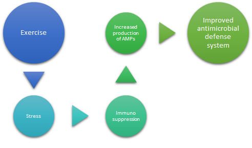 | Figure 1: Exercise ramps up the "AMP"-part of the immune defenses acutely (Gillum. 2015). |