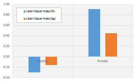 In their study, Norton et al. (2015) observed a highly significant increase in lean tissue mass of 1% in 24 weeks when the subjects who consumed a protein sufficient diet with 1.2g protein/kg body weight (that's 50% higher than the FDA minimum of 0.8g/kg) added only 0.3g/kg milk protein to their diets. The protein came from two shakes that were - and this may be important - consumed with the lowest protein meals of the day.