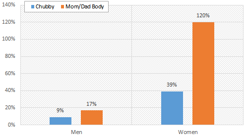 If you look at the characteristics of the recently hyped "dad body" it's hard to ignore that - from a medical point of view - many of the alleged "mommies" and "daddies" would be classified as a normal weight obese individuals, i.e. someone who's BMI is in the normal zone, but whose body fat percentage exceeds ≥25. 4 % (for women this would be ≥31.4 %).